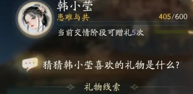 射雕韩小莹喜欢的礼物是什么